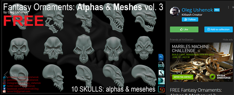 FREE Fantasy Ornaments: Alphas & Meshes vol 3@ArtStation