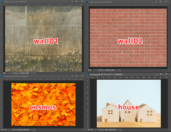 Textures.comやPhotoACから適当なテクスチャ素材をDLしてきました。