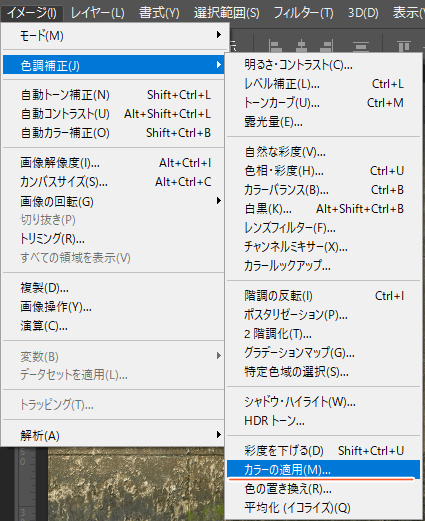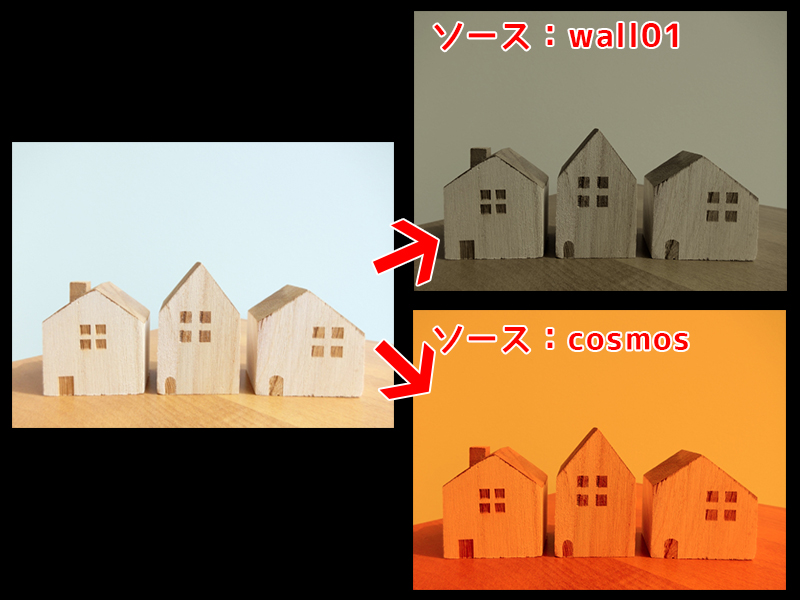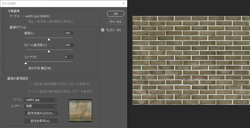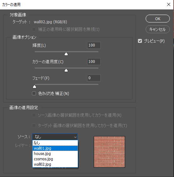 - 画像の適用設定のソースでソーステクスチャ(色味を参照したいテクスチャ)を選択