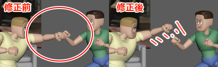 完全にポーズのコピペ(床に縫い付けられているような状態)な箇所に動きを出す。