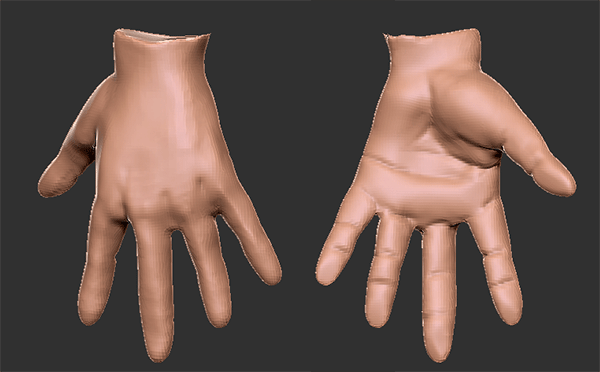 手のパーツの追加とスカルプト工程。Damstandardブラシについて