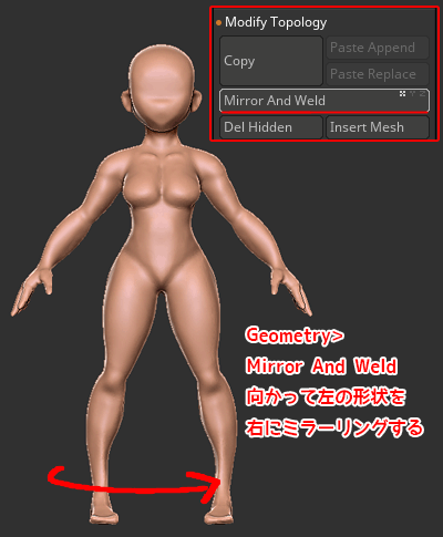 Geometry>Modify Topology>Mirror And Weldで形状をミラーリング