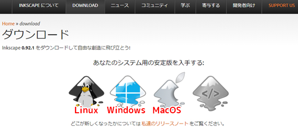 Illustratorの代替ソフトとなりうるInkscapeのダウンロード方法のご紹介です。