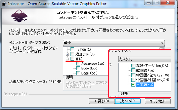 日本語は一番最後です。そこのチェックを入れて再インストールしてみたところ