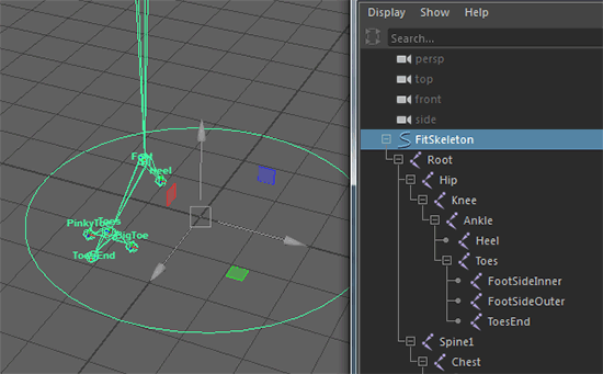 各関節の選択し、Translate(移動)で、モデルに合わせていきます。
