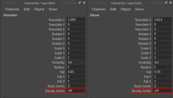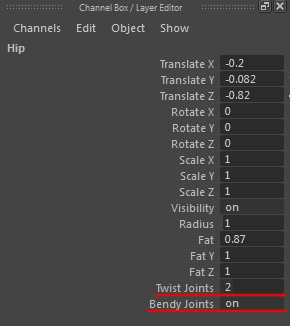 ジョイントをしならせるためのベンドのコントローラーの有無です。