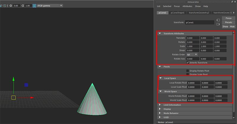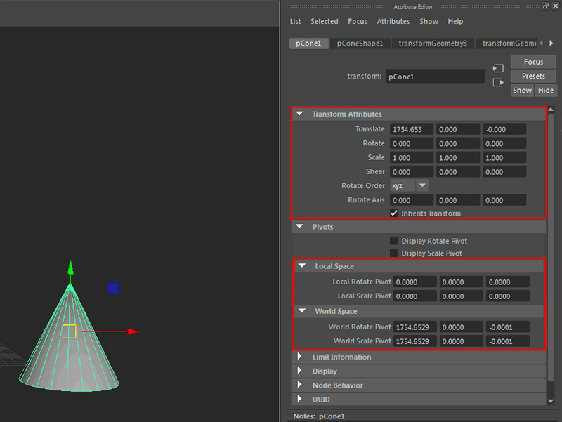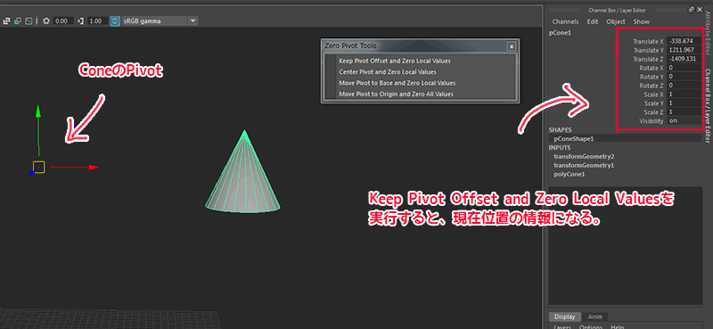 ■Keep Pivot Offset and Zero Local Valuesを実行するとピボットの原点からの現在位置が表示されます。