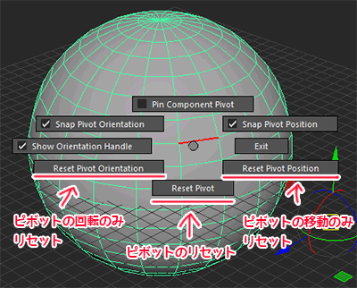 Reset Pivotを押すとピボットが元の位置に戻ります。