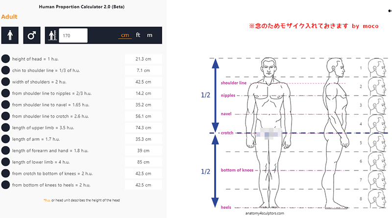 身長を入力→人体の平均値がわかる! Human Proportion Calculator 2.0