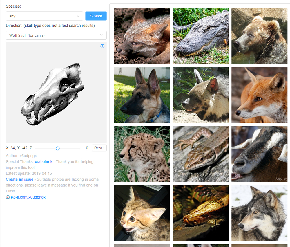 頭蓋骨(ガイド)の角度に合わせて動物検索! Animal Photo References Search