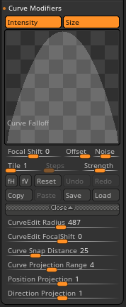 例えば、このスライダが10に設定されている場合。ZBrush は、カーブ上の赤から黒への移行ごとに、選択されたアルファを 10 回繰り返して適用します。低い値では、設定したのアルファインスタンスが確認できます。