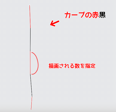 StrokeがDragDotを選択している場合、選択されたアルファがCurveに沿って何回適用されるかを制御します。