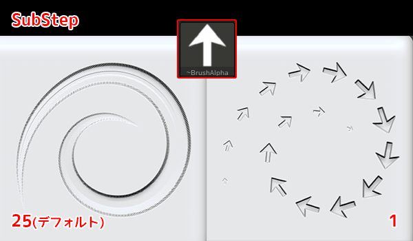 このインスタンスの数はStroke>Curve>SubStepで調整することが出来ます。