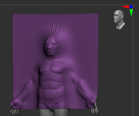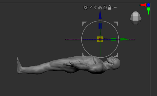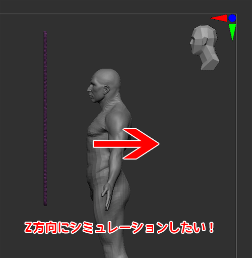 - シミュレーションしたい方向をZBrushキャンバスの上から下に向かうようにビューポート上でモデルを回転させます。