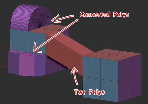 Connected Polys:クリックしたポリゴンと隣接するポリゴンを接続し、新しい形状を作成します。ブリッジの形状は、さまざまなOptionとModifiersによって大きく影響を受けます。