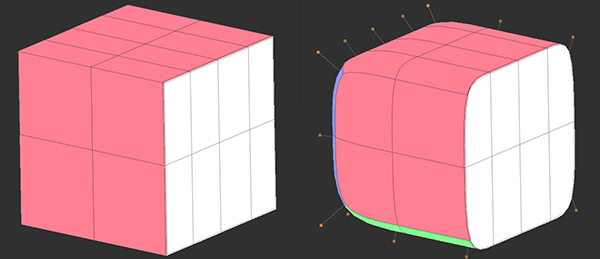パッと見変化がないように見えますが、Dynamic Subdivisionを使用した際に確認できます