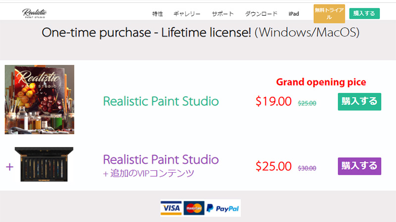 - Realistic Paint Studio $25 ※現在オープニングセール中で$19
