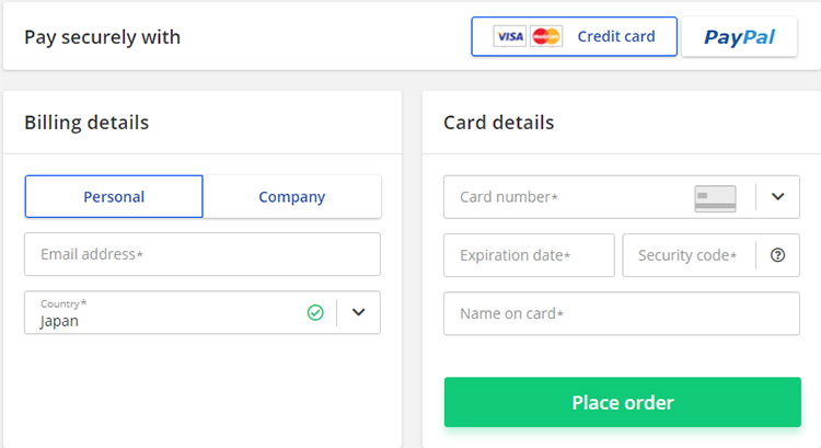 - クレジットカード支払いかPayPalかを選択します。私はpaypalでの購入しました。