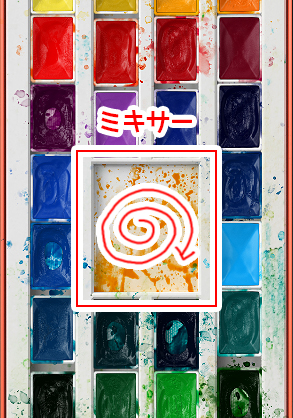 - その状態でパレットの中心にあるミキサーで、クリックしたままグルグル動かします。