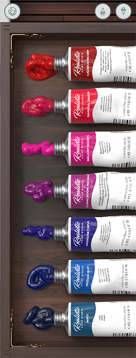 左上のボタンで絵の具⇔パレットを切り替えます。