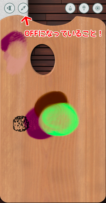 - 同様に混ぜたい色を選択してパレットにヌリヌリ。混ぜる際にはパレット上部のスポイトアイコンがOFFになっていることを確認してください。