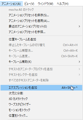 エクスプレッションを適用したい要素を選択してからメニューにアクセスすると適用できます