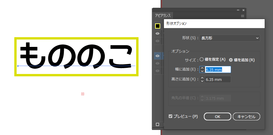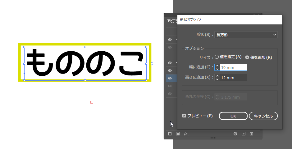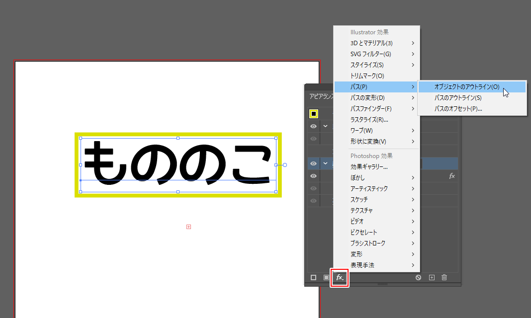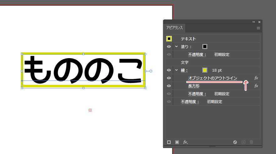 を適用します。適用後、オブジェクトのアウトラインを長方形の上に移動します。これでキレイにセンターになりました。
