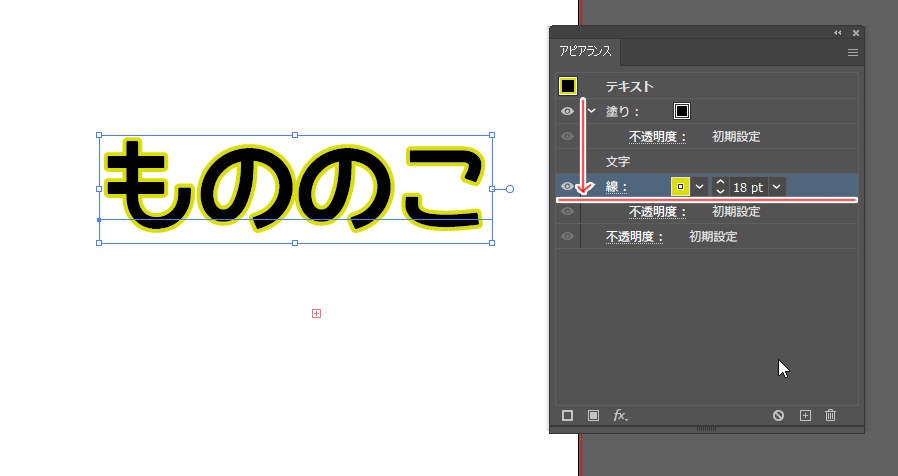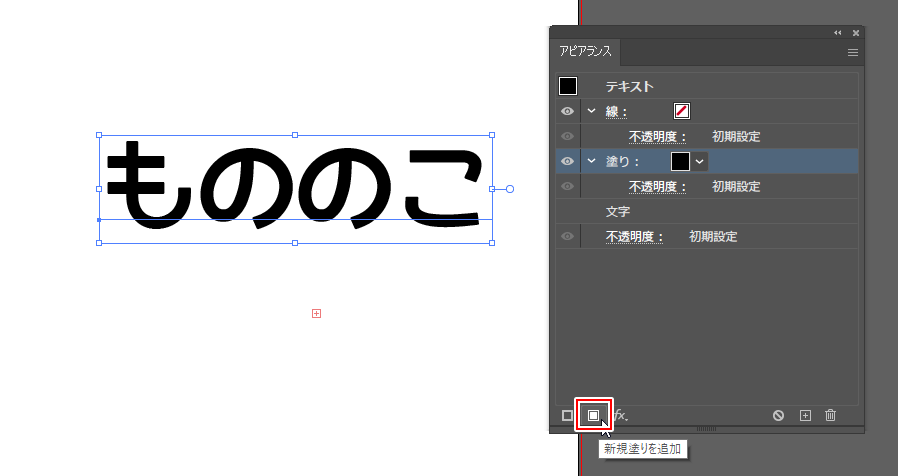 アピアランスパネルの新規塗りを追加を押して、塗りを追加します。