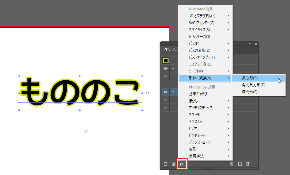 線を選択した状態で、新規効果を追加>形状に変換>長方形を選択します。