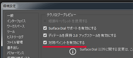 編集>環境設定>テクノロジープレビュー>対称ペイントをON