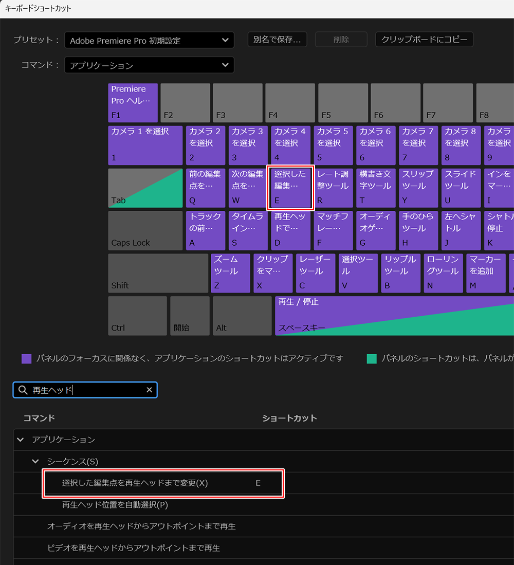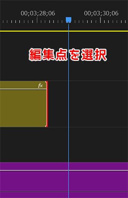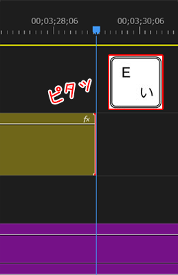 編集点が選択された状態で、Eキー を押します。