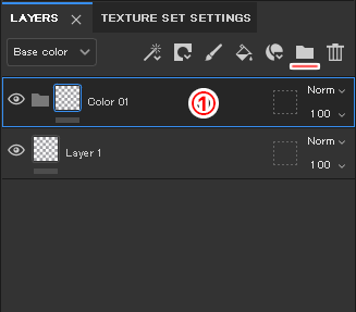 - Layersで、フォルダボタンをクリックして新しいフォルダを作成し、名前を「Color 01」とします。