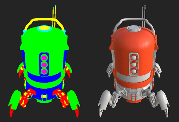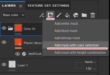 ベイクしたIDマップを使って、「Add Mask with Color Selection」オプションを使ってマスクを適用していきます。