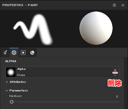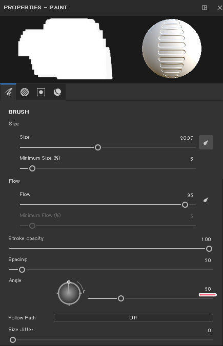 という記載でしたが、実際試したらCTRL押しながらでないとブラシが変更されませんでした。また何故かノーマルマップが表示されず(※後日解決済み)マウスアクションでの回転はどれだけ回転しているかよくわからなかったので、Properties-Paint、Brushタブで値を直接入力しました![]()