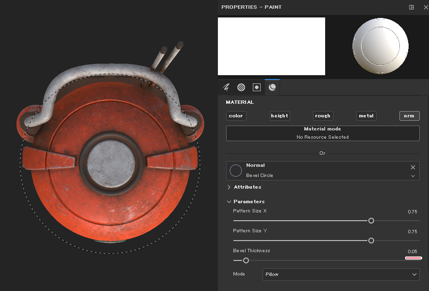 - Bevel CircleテクスチャをProperties-Paintでノーマルマップにドラッグします。