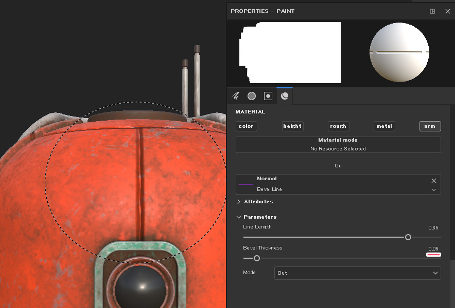 - Bevel LineテクスチャをProperties-Paintでノーマルマップにドラッグします。