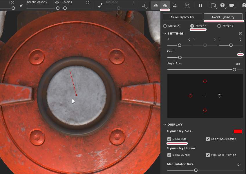 ・Show Axisを有効:ラディアルシンメトリーの原点を可視化します。