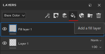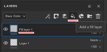 FillレイヤーのメニューにはFill propertiesとMaterialがあります。