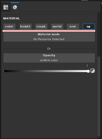 - LAYERSのPROPERTIES>MATERIALタブ Opacity以外をOFFにする