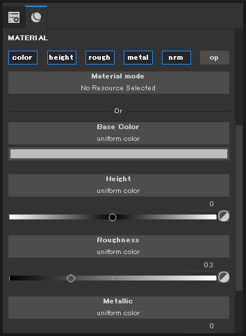 マテリアルに適用するチャンネルのON/OFFや適用具合を調整します