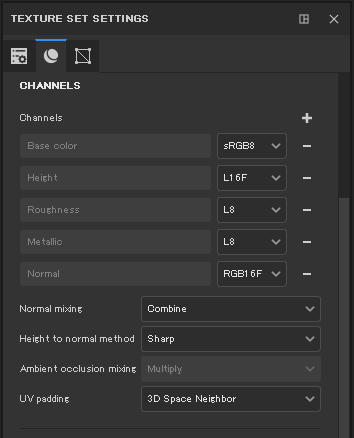 fa-check-circle-oTexture Set Settingsで適用するチャンネルの管理を行う