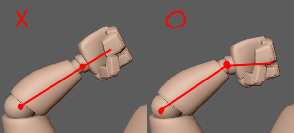 肘と手首のラインを一直線にしない