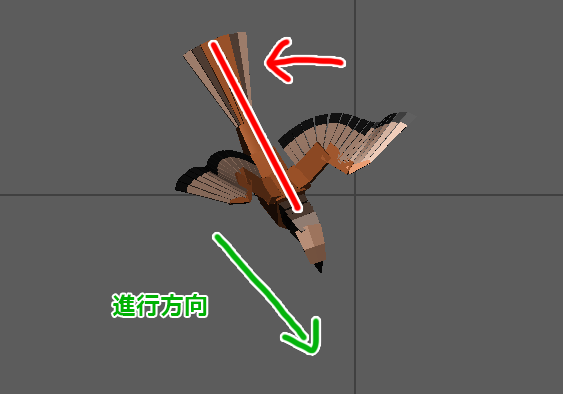 - 滑空時、(風の抵抗をうけて)後に下がっていく(-方向に移動する)動きを作成