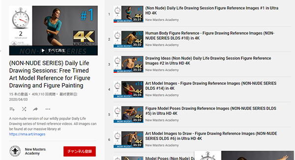 リファレンスそろえるのなんて大変!!なんて人にはジェスチャードローイング専用のサイトやドローイング用の動画配信があります。