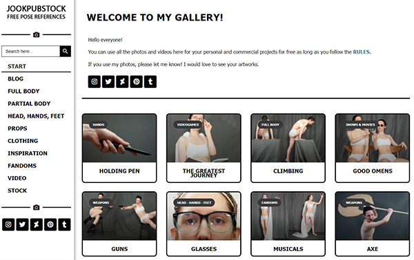ポーズリファレンス集の販売もしているこちらのサイト。公共の場所でも大丈夫そうです。