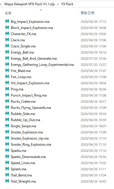 アニメーターのShadrak Guichard-Foster氏(@ShadrakGF)が作成したVFXアセット。Maya2018以上のバージョンであれば動くとのこと。非商用