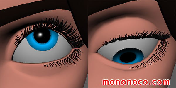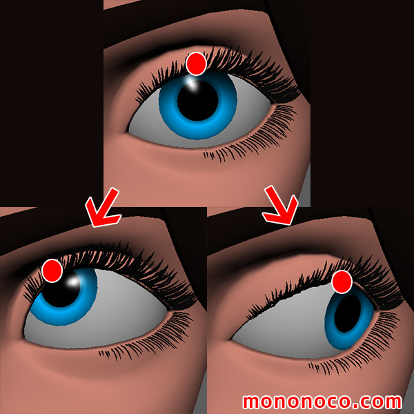基本的に黒目の上に頂点が来て、黒目に合わせてまぶたも動きます。