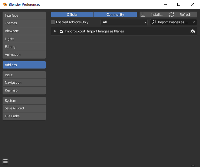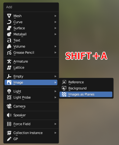 標準搭載のアドオンImport Images as Planesを有効にすると、選択したテクスチャを貼った状態の平面が生成されます。