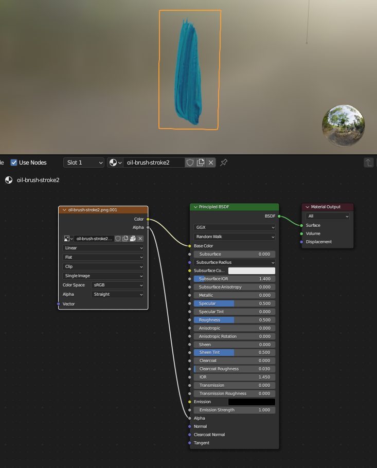 Shadingタブに移動し、画像のアルファとマテリアルのアルファをつなぎます