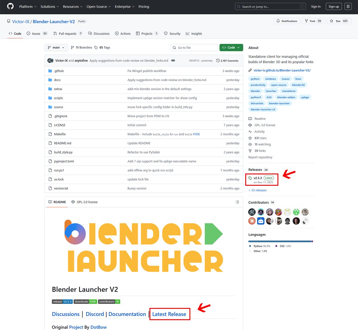 詳細は省略。DotBow/Blender-Launcher(2022年から非アクティブ)からのフォーク。